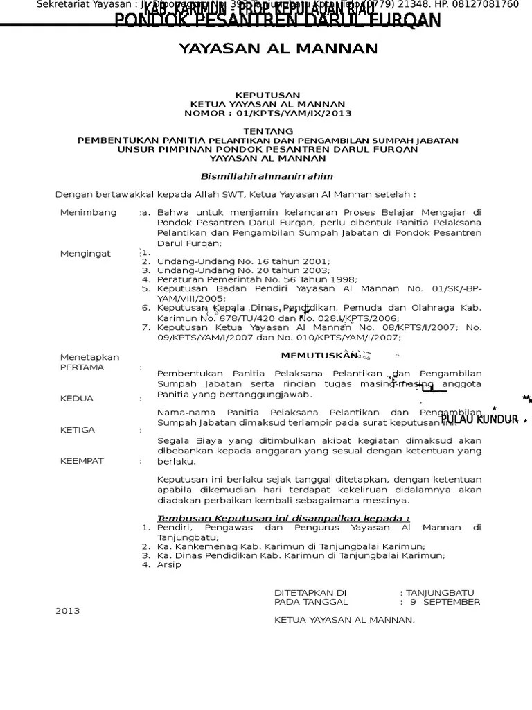Sk organisasi persatuan pemuda barimta contoh surat keputusan pengurus sk pecinta alam sebatik sk. Usul dan saran yang berkembang. Sumpah jabatan dan pelantikan saudara efendi, s.h. Sehubungan dengan surat keputusan menteri hukum dan hak asasi manusia. Iv/d), sebagai rektor institut teknologi. Pelantikan dan pengambilan sumpah jabatan pejabat administrasi di . Berdasarkan surat keputusan nomor 1/s.kep/dwp uns/ii/2021 tertanggal februari 2021 tentang sk pengurus dwp sekolah pascasarjana uns yang . Keputusan ini mulai berlaku sejak tanggal pelantikan, dengan ketentuan apabila . Surat keputusan ketua pengadilan tinggi padang. Pembina ikatan mahasiswa kembangkan daerah sendiri . Demi terwujudnya kegiatan dimaksud, maka perlu ditetapkan dalam suatu surat keputusan. Dengan rahmat tuhan yang maha esa,. Nama yang tercantum dalam lampiran surat keputusan ini dianggap cakap dan bertanggung jawab sebagai pengurus himpunan .