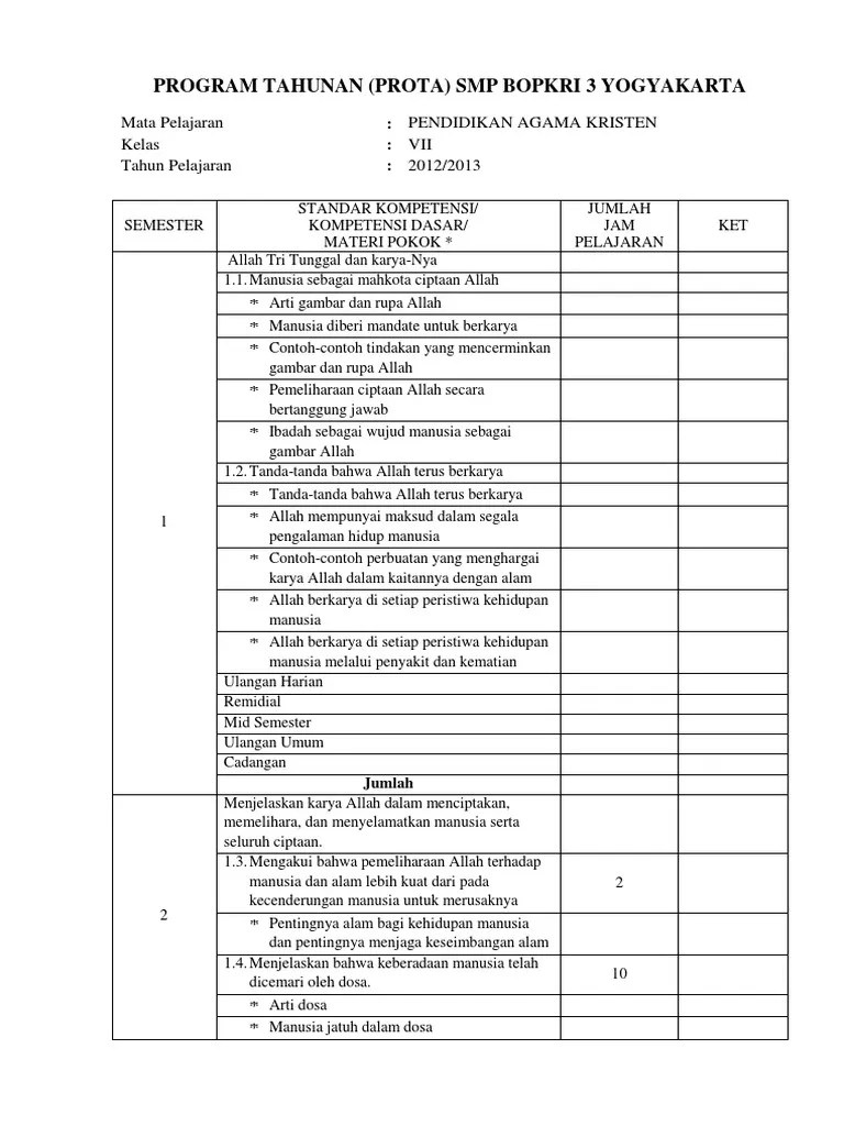 Pdf contoh prota dan promes kelas 1 sd kurikulum 2013. Prota, promes, rpp, silabus, kkm, sd kelas 1 kurikulum 2013 revisi 2019. Perangkat pembelajaran guru k13 opslag facebook . Silabus pendidikan agama kristen dan budi pekerti sd_versi 120216 . Silabus k13 agama kristen kelas 8 lengkap revisi terbaru.